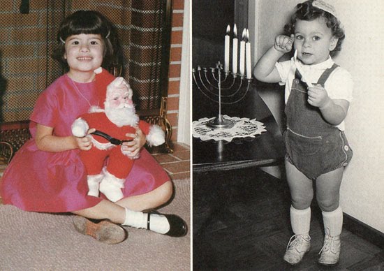 It's been a tradition in our home the past 15 years to do wacky holiday cards. The card above was the first of what became an annual tradition. My husband Leif and I as little ones, lighting the Chanukah menorah and holding Santa. One in Sweden and one in the USA.